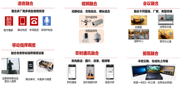 智能音视频融合通信系统提供丰富的音视频接入和交换业务,包括视频会议、视频监控、模拟话机、IP话机、可视话机、手机、单兵终端、卫星电话等不同有线、无线终端设备的接入与融合。并能提供视频通话、语音通话、互动直播、实时消息、公网对讲、 实时录制等功能。通过超低延时、高质量的实时音视频极大的满足应急通信、安全生产、应急救援等场景下对融合通讯音视频业务的需求。